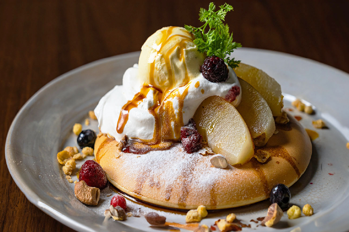 素材にこだわったクラシックパンケーキはサクッとしっとり柔らかく、控えめな甘さ。独特な風味と食感でスイーツにもお野菜にもよく合います。香り豊かなコーヒーと共にお召し上がりいただきたい一品です。